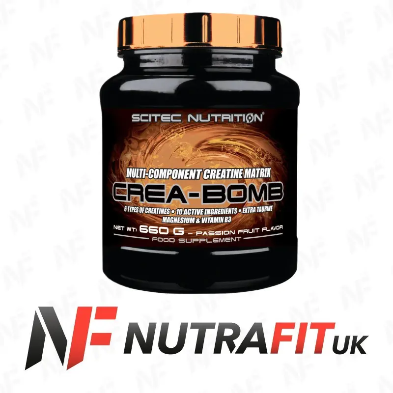 There's advantage in diversity and teamwork. Don't take part in the futile debate of which single creatine type is the best – take many types! 'Carpet bomb' your muscle cells with every important version of creatine with SCITEC NUTRITION CREA-BOMB. 5 component multi-creatine matrix provides - among others - the most studied creatine form ever! Creatine in this dose (at least 3 grams a day) is scientifically proven to increase performance in successive bursts of short-term, high intensity exercise like weight training and interval cardio! Some of our key ingredients also contribute to one or more of the following beneficial physiological effects: • normal protein synthesis • normal functioning of the nervous system: neurotransmission and muscle contraction including heart muscle • reduction of tiredness and fatigue • normal energy-yielding metabolism • normal psychological function • electrolyte balance • maintenance of normal bones and teeth *these statements have been scientifically proven by the European Food Safety Authority (EFSA) and authorized by the European Commission (EC)
