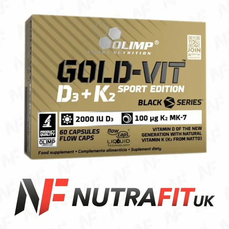 OLIMP NUTRITION GOLD-VIT D3 + K2 SPORT EDITION is a food supplement in the form of Flow Caps liquid capsules, containing high dose vitamin D (D3) in a dose of 2000IU. The product also contains natural vitamin K from natto, high absorbable and active form 1–menaquinone-7 (vitamin K2). Vitamin D contributes to the normal function of the immune system and normal absorption/utilisation of calcium and phosphorus. Moreover vitamin K contributes to normal blood clotting and similarly to vitamin D, it helps to maintain healthy bones. The preparation is manufactured using the innovative Flow Caps Liquid Technology, which guarantees quick absorption in the body and maintains high quality of applied components.