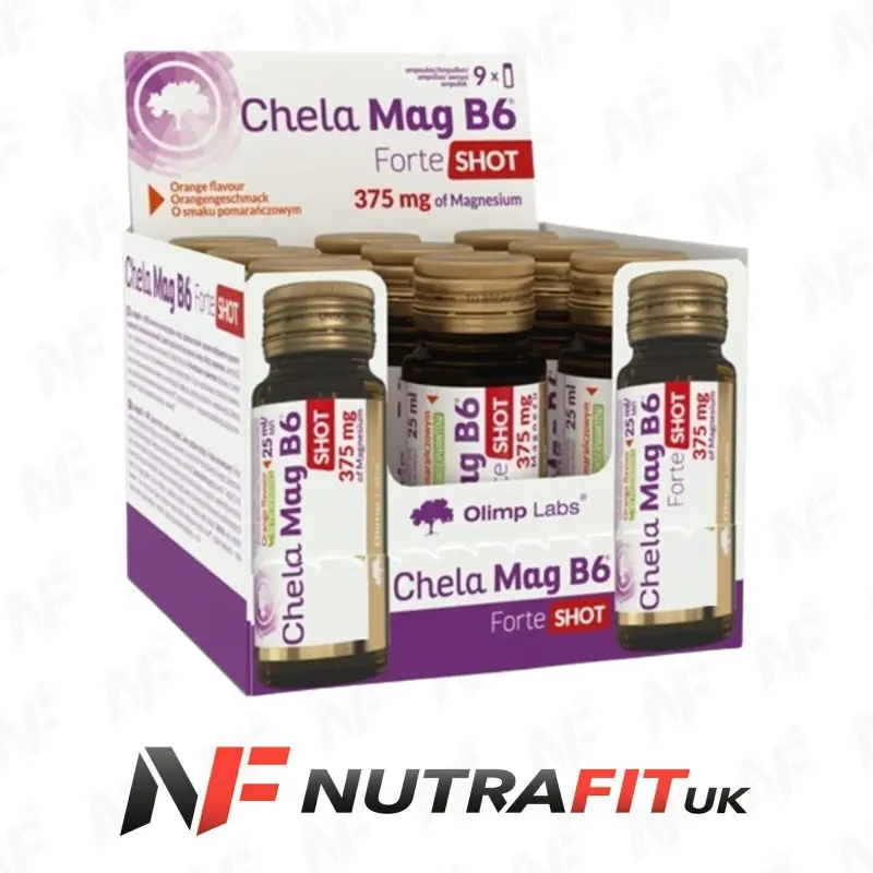 OLIMP NUTRITION CHELA-MAG B6 FORTE SHOT contains a highly-absorbable liquid form of magnesium in the form of amino acid chelate by Albion® in a 375mg single-dose of pure magnesium ions enriched with vitamin B6.